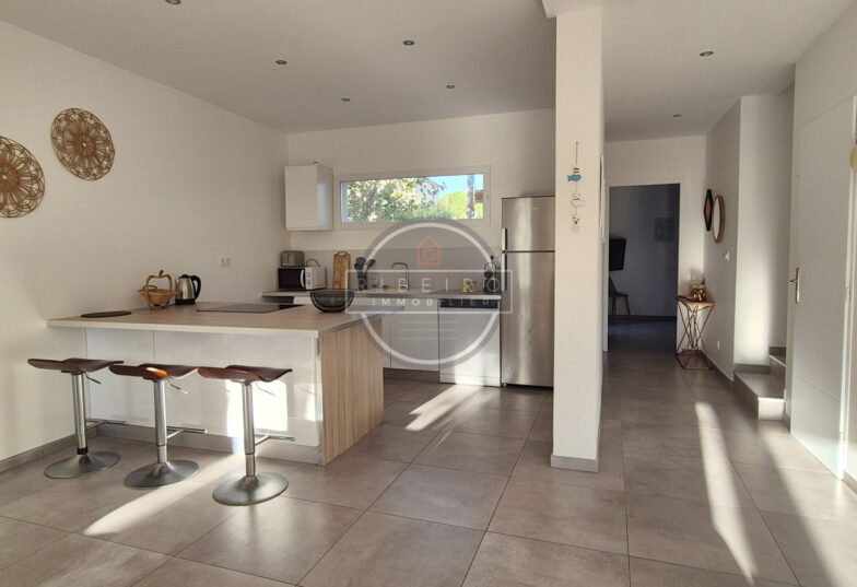 Vente Villa Le grau d agde REF:555 – GRAU D’AGDE – À quelques minutes seulement des plages et du centre village, dans un secteur particulièrement prisé du Grau d’Agde, cette villa contemporaine de 2016 vous invite à vivre au rythme de la mer, dans une atmosphère faite de lumière, de douceur et de tranquillité.Dès l’entrée, […]-